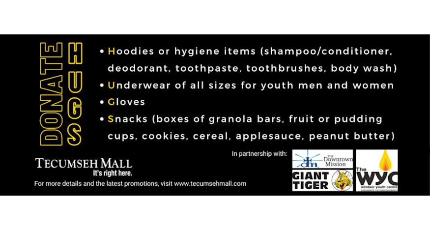 On November 27th, Tecumseh Mall warmed up Black Friday as they joined forces with The Windsor Youth Centre in support of the ‘HUGS’ program with the GIVE ‘HUGS’ & Grab A Swag Bag event. Customers were encouraged to give a little warmth to at-risk and homeless youth in Windsor Essex County in exchange for a loaded swag bag.